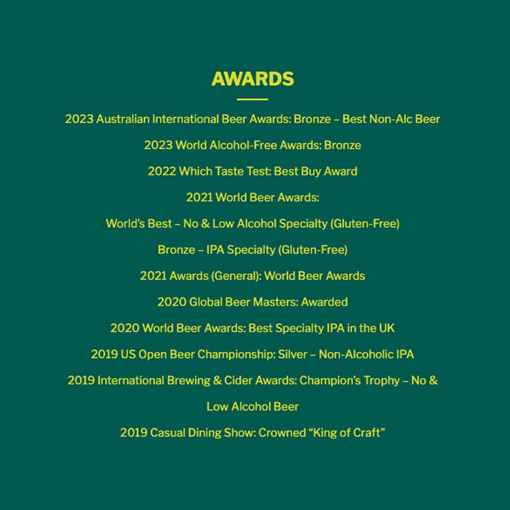 • Big citrus flavour, zero alcohol (0.5% ABV)